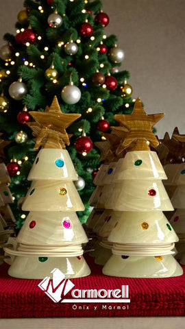 LINDO PINITO DE NAVIDAD DE ONIX NATURAL CON PEQUEÑEAS LENTEJUELAS DE COLORES Y ESTRELLA DE ONIX CHOCOLATE NATURAL.