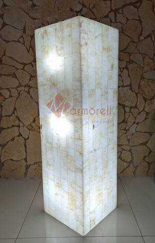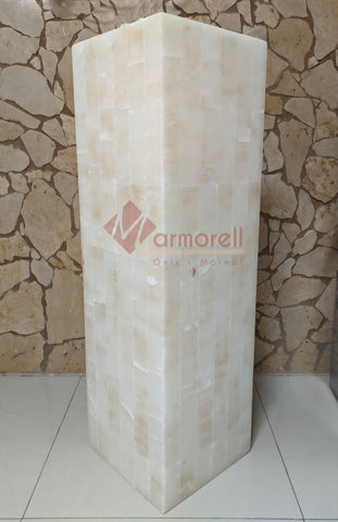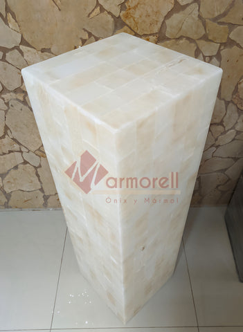 MARQUETERIA DE ONIX BLANCO NATURAL MOD. TORRE 1 METRO DE ALTURA Y 30X30